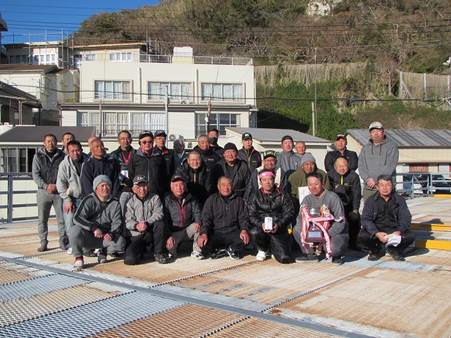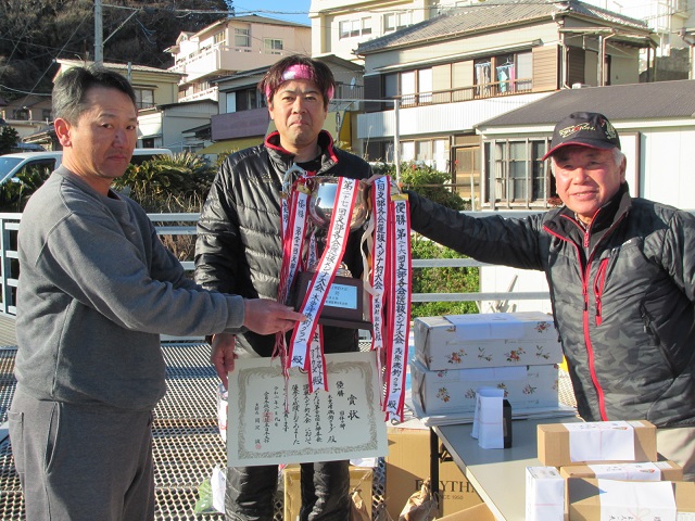 各会選抜メジナ釣大会 鴨川市太海 新海荘 参加者:平松・石渡会員・関根会員・中山会員・森田会員 支部他クラブ参加者23名 総勢28名大会でした! はじめに私事ですが、久しぶりの釣行のためか?防寒対策が万全でなかった為か?、9日の夜半より腹痛と下痢にみまわれ、10・11日と体調不良のため更新が遅れましたことを、お詫び申し上げます。歳には勝てないですねぇ〜〜! さて我が木更津磯の面々は、北寄りの風が強く吹きとても釣り辛いなか、団体の部エントリーの関根会員は雨乞いの本島に渡り、石渡会員はタコ坊主裏の角に陣取り、個人参加の中山会員と森田会員は仲良く棚に渡り、私はそれでも風を避けタコ坊主の表入りましたが、折からの北寄りの風が想像以上に強く、カワハギ狙いの私は一回投げただけで終了(風の為全くアタリが取れないので)!する事が無いので仕方なく、タコ裏の石渡会員の様子を見たり、雨乞いの関根会員の様子を見たり、平らな所を見つけて日向ぼっこや昼寝で時間を過ごし、12:30分頃から各磯ともに仕舞支度をして居ましたが、新海丸の到着が予想以上に遅く、13:30頃に全ての撤収が終え、いよいよ検量となるわけですが・・・俄かに雲行きと言うか?風向きが変わってきて、何と!何と!木更津磯が団体の部で関根会員28.0cm・石渡会員が33.5cmで合計61.5cmとなり目出度く優勝となり、何十年ぶりかの上物大会優勝以来の快挙となりました、また個人の部では石渡会員が33.5cmで優勝し、準優勝にはTFFの藤本氏が32.5cm、第3位には茂原磯の吉野氏が29.3cm入賞となりました。「3名の釣果の画像です」改めておめでとうございました! 団体の部の順位 個人の部の順位 ご協賛者リスト(順不同) 表彰式終了後には、お楽しみ大抽選大会があり、協賛を頂きました商品を多数参加者に配布し、寒い一日でしたが、楽しい釣り大会となりました。またご協賛を頂きました「アタック釣具店・キャスティング市原16号店・日刊スポーツ・新海荘他支部役員の皆様には、ご協力本当にありがとうございました。この場を借りて御礼を申し上げます。参加して頂きました会員各位には、朝早くから夕刻までお疲れさまでした。また来年頑張りましょう!参加者の集合写真です〜〜〜! |