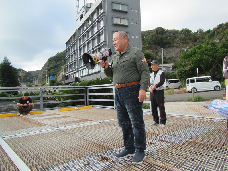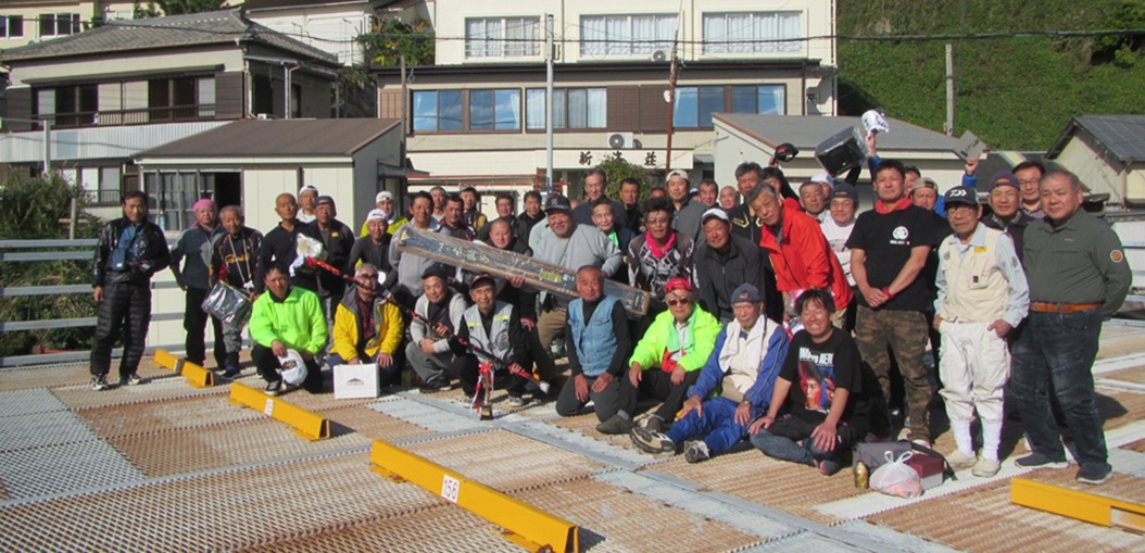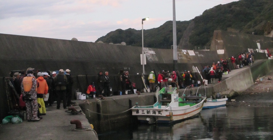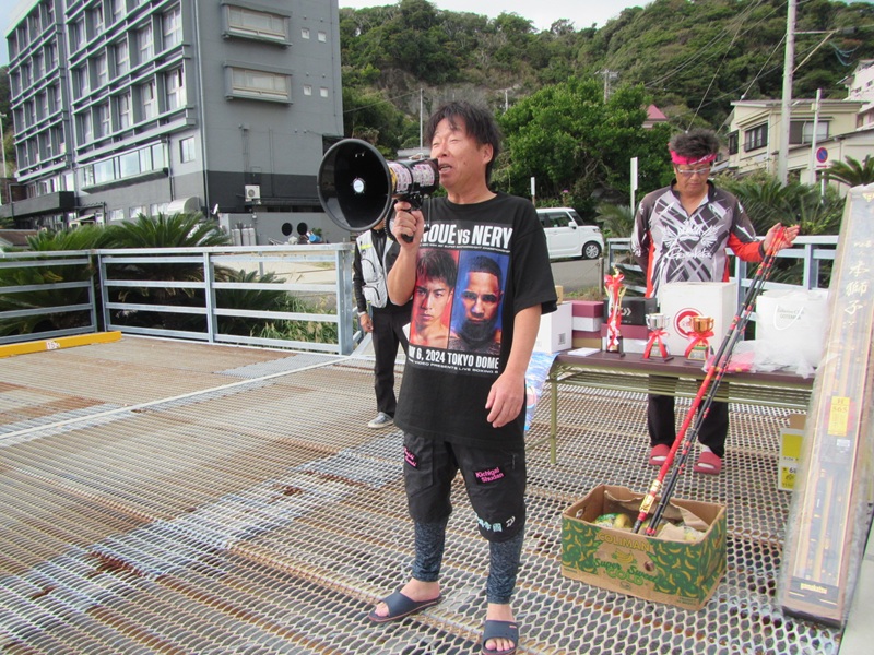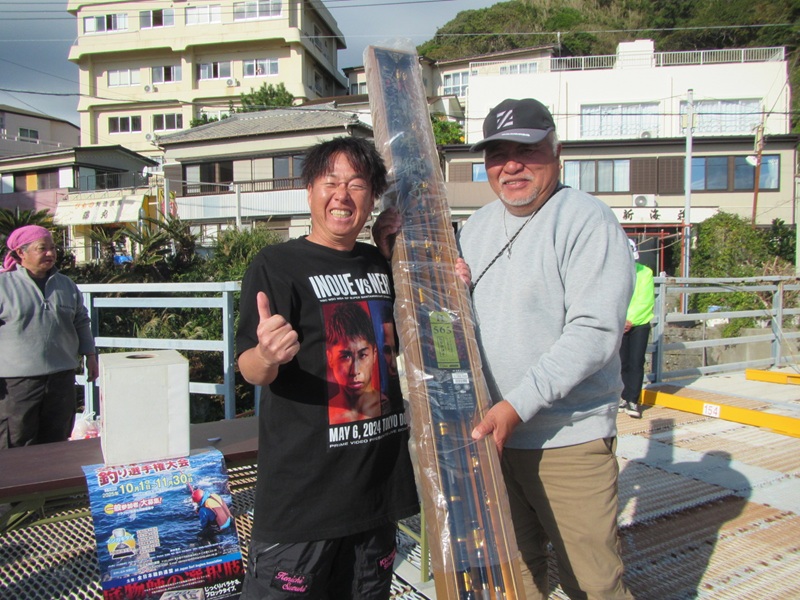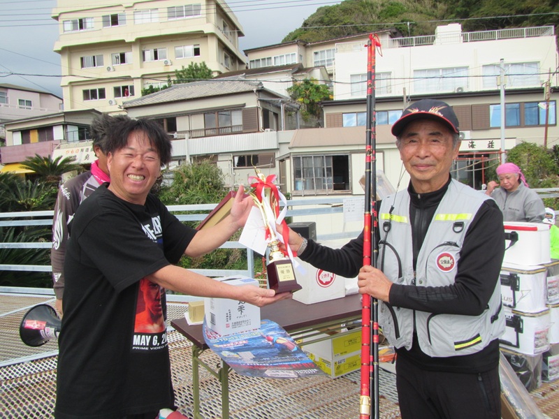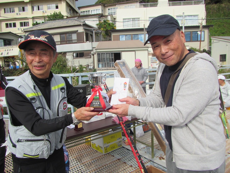 太海イシダイ釣大会 鴨川市太海 新海荘 参加者:平松・葛島副会長・石井会員・肥後会員・石橋会員・中山会員・岡本会員・鈴木会員 上記の8名と千葉県並びに関東一円の猛者が、総勢50名も集結して「太海イシダイ釣大会」が行われました。 開始直後の太海漁港の乗船待ち風景、大勢の釣師が並んでいる姿は、とても良い景色で気が引き締まる思いです。波の状況に合わせて渡船場所を船長が決めていき(ややテンパってイライラしてました、ごめんなさいね!悪気は無いので・・・)、5回の往復で何とか収まりました。 最後の便に乗船した時に撮影した画像、小島への渡船後の画像、 旅の台の釣行画像、 サムライ島の釣行画像、そして私と石鯛帝国の鈴木氏が、最北の双子島に渡り、吹きすさむ北風に耐えながら、竿を出したのは8時頃になっていました。 竿を出した早々は、大したエサ取りもなく、それでも一番早く渡った平島では、イシガキダイが釣れた報告もあり、取り敢えず「魚が出れば良いよね!」なんて鈴木氏と話をして、9時を廻ってウネリが徐々に出始めた頃、私の竿にアタリが出て、釣れてきたのは小型の縞々で、大会も15回になりますが、下手糞な私は一度も釣った事がなく、何とか3位くらいにはなるかと思った瞬間でした。 我々は役員の為11時磯上がりを予定していましたが、東からのウネリが徐々に強くなり、10時45分に終了撤収して、そのまま沖磯の小島に撤収に行き、第一便の帰港となりました。 予報によると凪模様のはずが、やや波浪の状況で、当初の磯割とは別の磯に渡った参加者も居ましたし、時間まで出来なかった参加者も居ましたが、何とか最終の12時まで事故もなく無事に行えました。 大会開始の時は必ずcheck inをしますので、磯上がり後はcheck outと抽選札を記入し待機となります。房総サイズのイシガキダイが多く釣れているようでしたが、対象外の寸法で検量しない参加者も居たようです。 慎重なる検量の結果、優勝は何と私でイシダイ39.5cm/1.38kg、 準優勝は取手の田中氏でイシガキダイ37.5cm/1.25kg、 第3位には正鱗クラブの小山氏でイシガキダイ36.6cm/1.10kgでした。 受賞者の集合写真がコチラ! 13時30分頃、表彰式並びに大抽選大会が行われ、実行委員の石鯛帝国の鈴木氏が司会と挨拶を行い、八丈島荒磯会の磯野関東支部副支部長挨拶と、釣り選手権のPRを行い、次に私が今回の御礼と挨拶をして表彰式に、第3位は正鱗クラブの小山氏、準優勝は取手からお越しの一般参加の田中氏、そして優勝は15年目でやっと釣る事ができた私、全て皆さんのお陰で感謝!感謝です! その後の大抽選会では、皆様からの多くの協賛品が抽選で当たり、2回転までは少し足りませんでしたが、皆一様に大喜びで、家庭に持ち帰っても喜ばれる「バナナ・柿・切り餅」等など、そして最後に本日のメーンイベント、ダイワの石鯛リール海魂の抽選で、何と内房磯の浅井氏がアタリました、フィナーレのがまかつ本獅子は!強運の房総石鯛倶楽部の市原氏が目出度く引き当て、大喝采の中受賞しました。 終わりの参加者全員が集合して、またの再会を交わしながら記念撮影をして、終了となりました。 この大会も、多くの参加者の皆さんと、多くの御協賛により成り立っているもので、多くの皆様に心から感謝申し上げるところでございます。次回の開催は、私の体力と気力が維持できれば、また集まりたいと思っています。 皆様にもくれぐれもご自愛頂き、共に元気な笑顔で再会を祈念申し上げて、御礼に代えさせて頂きます。 ありがとうございました。 |