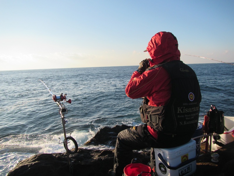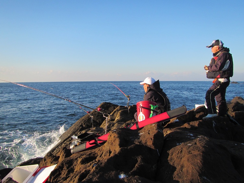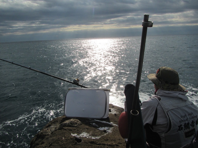自由釣行:鴨川市太海 新海荘 釣行者:平松・岡本会員 (貝溜より開始早々に画像) やや波があることを承知の上で両名で太海に出撃! 北側は大波で南側も波浪があり、渡るところは貝溜くらいで(貝溜から見た旅の台の日の出)、潮位が低いのに足元を波が洗い、船着けばの右側に私が入り、 岡本会員は右寄りの先端に入りましたが、徐々に潮が上げて来て波が上がってきたので、私の右側まで移動したような感じでした。 岡本会員が移動する前にアタリがあり、元気に突っ込んで行かないけど合わて巻いてくると、何と!良型の美味しそうなアカハタ、「これじゃ引き込まないよね!」・・・その後もイシガキらしいアタリは時々あるものの、針には掛かってくれない、仕方なく正体を見るために小針に変えたら、チビガキが釣れてきて、10時近くになり波が足元と洗い、二人ともにパンツまで濡れて、寒くないから良いものの、11時で終了を決定してた後に、私に赤目フグが釣れてきて、潮が落としに掛ったのか、少し元気なイシガキのアタリが出てきたものの、時間となり釣道具を片付けて本日の釣行終了となりました。 釣果は、イシガキダイ1匹・アカハタ1匹・赤目フグ1匹でした。次回頑張りましょうね! |
