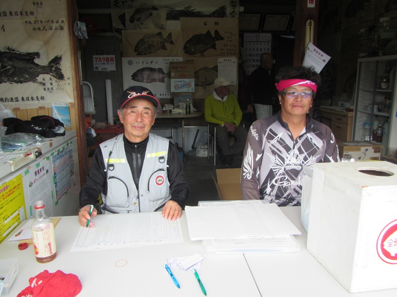 自由釣行:南房総市の地磯 伊戸周辺 釣行者:肥後会員・石橋会員 久しぶりに両名で伊戸周辺の地磯に出撃して、一発大物を狙って頑張ったようで、「釣れました!大きいです!」との連絡があり、暫く釣をしていなかったから魚が大きく見えたのか分かりませんが、「正式に検量してから連絡ください!」と言って電話を切り、午後になってからトーンダウンした声で、「大きく見えたのですが・・・59.0cm/4.08kgでした」との事、釣った時は大きくい見えるもので、釣師のあるあるですよね!、それにしても良型をGet!おめでとうございます。釣具店にて検量後の画像がコチラです! |