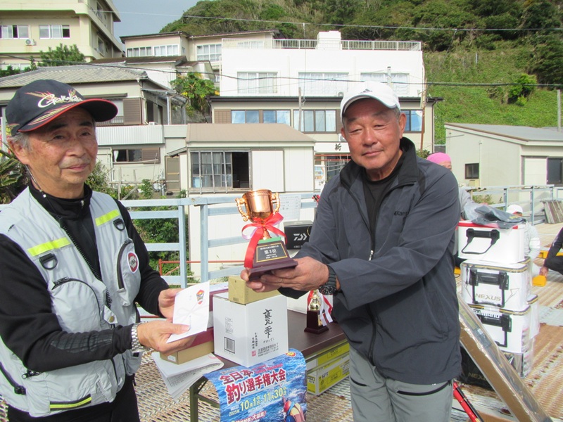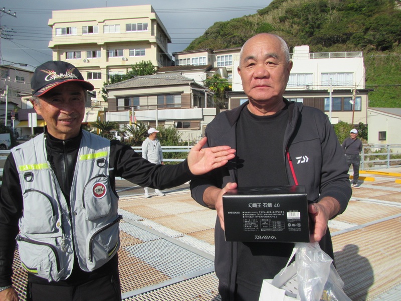 各会選抜メジナ釣大会 鴨川市太海 新海荘 参加者:葛島副会長・石井会員・石渡会員・中山会員・御簾納会員・岡本会員・鈴木会員の7名 東日本支部の年間行事の、各会選抜メジナ釣大会が鴨川市の太海で開催され、6時少し前から受付が始まり、6時30分頃から太海漁港に集結し、木更津磯からは上記の精鋭部隊が参加し、(平松は所要の為欠席でした。すみません!)平島に葛島副会長と岡本会員、そして鈴木会員が渡り、双子島には岡沢支部長と石井会員が、他の会員は何処に渡ったのかな?中山会員は旅の台?だったかな、、、、朝の内は雨が降り寒い釣行だったようですが、9時過ぎくらいから雨もやみ、何とかお昼過ぎまで28名の参加者が頑張り、木更津磯の会員は奮わなかったものの、タコ坊主裏に渡った内房磯の岩竹会長が良型のメジナを釣り目出度く優勝し、茂原磯の山﨑氏も良型を釣り上げ準優勝、そして第3位は内房磯の外山氏、(入賞者の勇姿がこちら) その後表彰式となり、支部長の挨拶から始まり、優勝者 内房磯の岩竹氏が表彰され、続いて準優勝の茂原磯の山﨑氏、第3位の内房磯の外山氏と表彰され、その後は大抽選大会に移行し、何とキャスティング賞は、木更津磯の石渡氏が見事Get!し、和やかなうちに全て順調に行われ、最後に全員揃っての記念撮影!、寒い中大変お疲れ様でしたぁ~ 最後に御協力頂きましたご協賛リスト・ 入賞者リストがこちらになります。支部役員の皆様・御協賛者の皆様心から御礼申し上げます。 ありがとうございました。2025年度も無事にスタートが切れました、本年も安全釣行を第一に頑張りましょうね! |